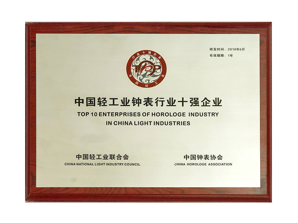 Rarone honored “Top 10 ENTERPRISES OF HORLOGE INDUSTRY IN CHINA LIGHT INDUSTRIES”