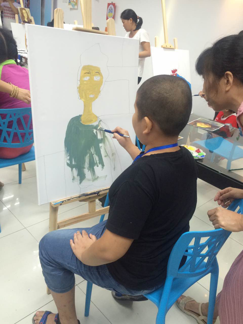基金會通過在全市自閉癥兒童中進行篩選,選拔出十幾名具有繪畫基礎的自閉癥孩子,免費為他們開展為期1年的助繪班指導,激發其繪畫潛能,培養他們的藝術修養,為他們帶來藝術教育的機會。